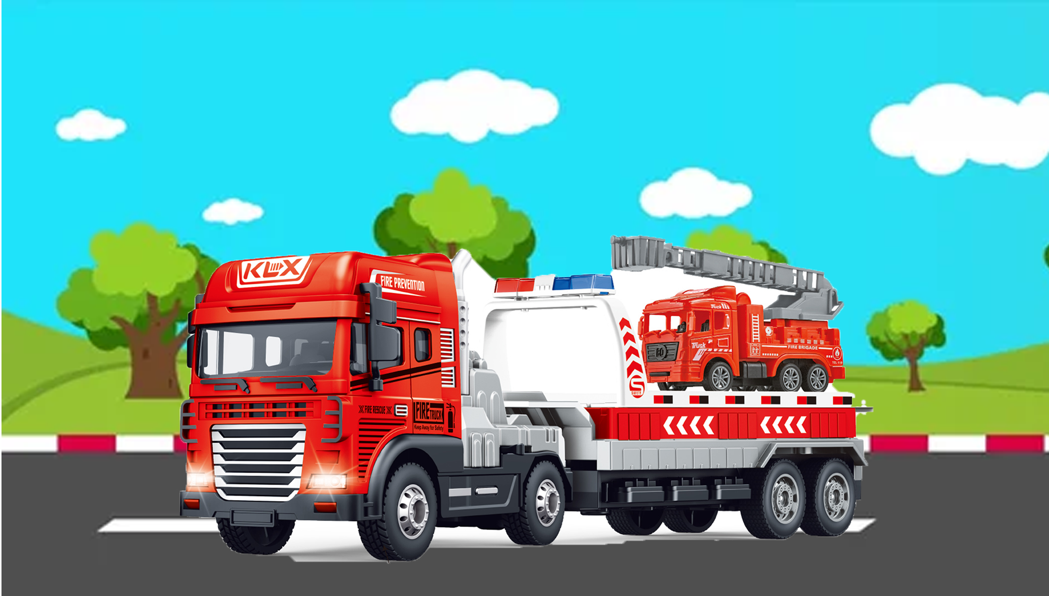 🔥 Pull-Out Trailer & Mini Fire Truck – The detachable trailer extends for added play value, while the included mini fire truck enhances interactive firefighting roleplay.
