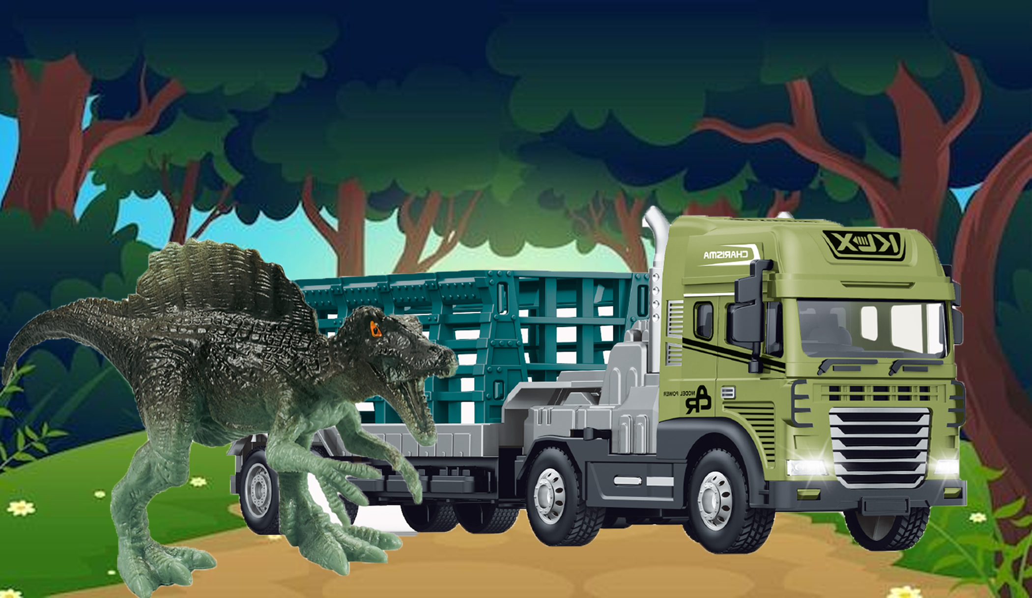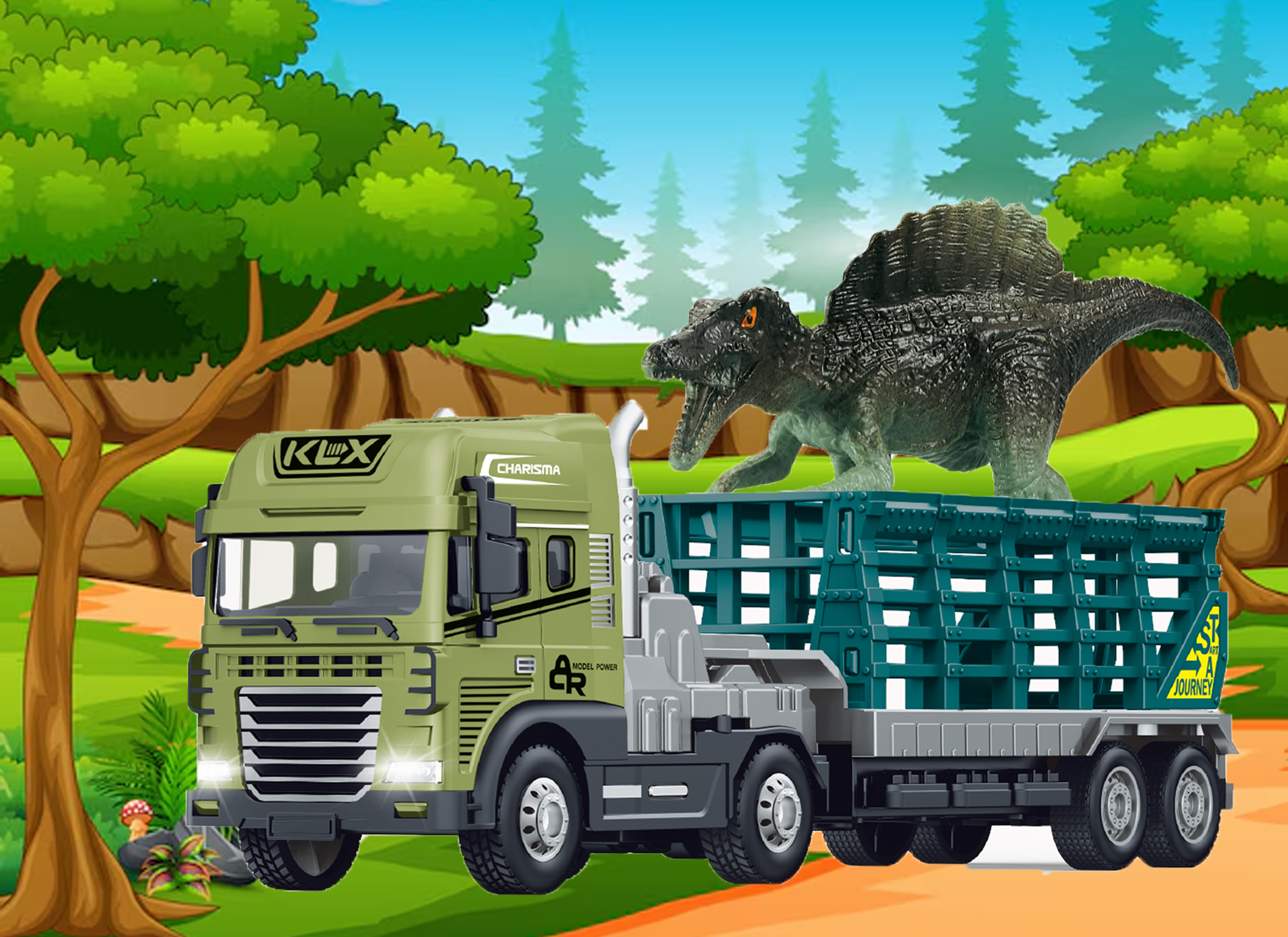 🦖 Includes Unique Animal Figure – Comes with one animal (dinosaur, zebra, or tiger) that can be carried on the main truck or played with separately for added adventure and creativity.